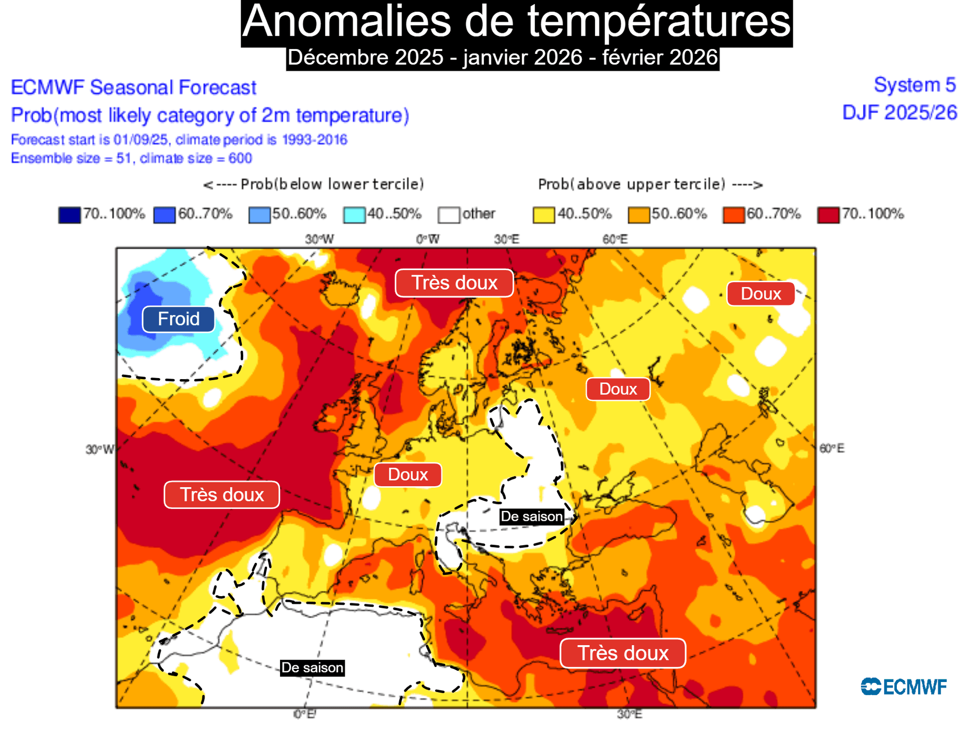 Ainsi, attention aux tendances glaciales évoquées par ces nombreux articles pour l'hiver prochain. Celles-ci sont mises en avant dans une recherche de clic et ne se basent sur aucune source fiable, voire même sur aucune source tout simplement. Rien n'indique pour le moment que cet hiver 2025/2026 sera froid en France, ce qui est d'ailleurs logique dans la dynamique du réchauffement climatique global.