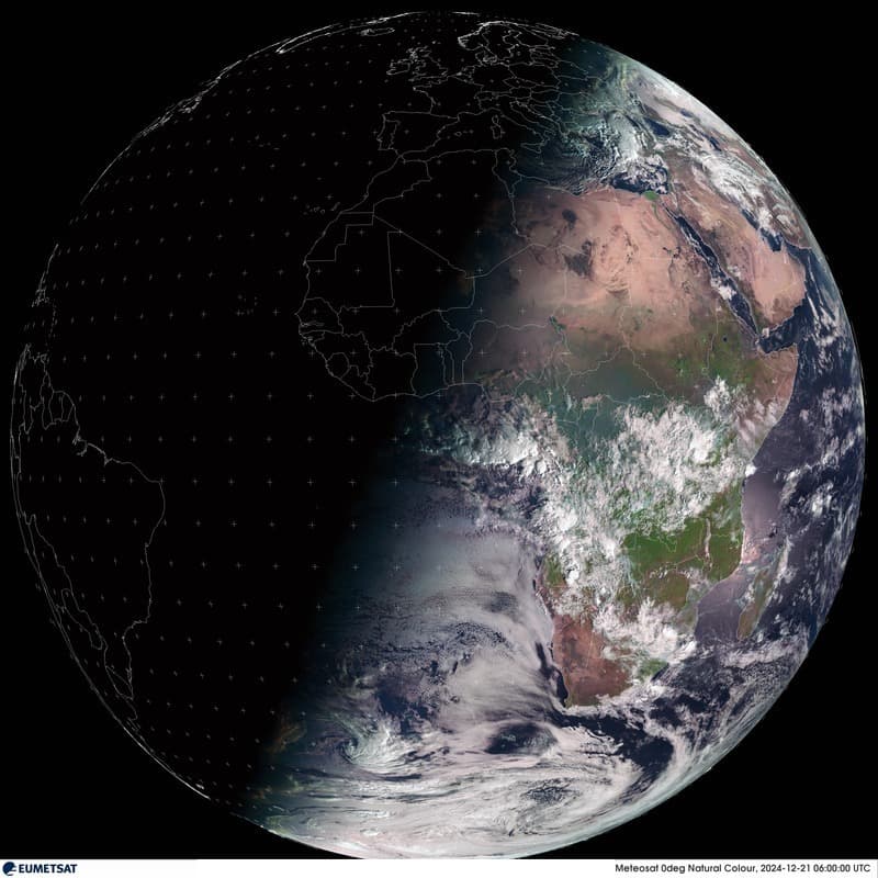 Vue satellite de la lumière solaire reçue sur Terre ce samedi 21 décembre 2024 - via EUMETSAT