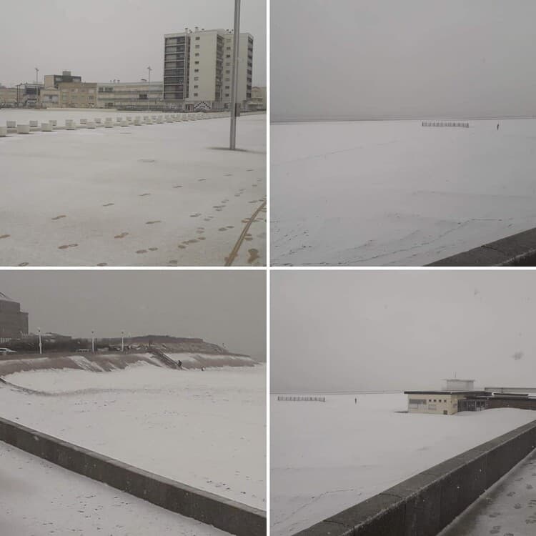 Ce fut au tour des Hauts-de-France d’être touchés par ces chutes de neige en cours d’après-midi avec des flocons tenant temporairement au sol jusqu’aux plages de Berck en début d’après-midi avant que la pluie ne prenne le relais.