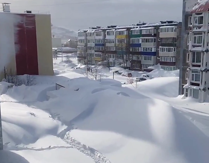 L'extrême est de la Russie fait la une depuis plusieurs jours. En cause, des chutes de neige remarquables dans le Kamtchatka avec des congères atteignant plusieurs mètres de haut et bloquant l'accès à certains bâtiments !