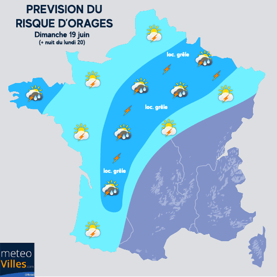 Prévision du risque d'orages - dimanche 18 juin 2022 (et nuit suivante) - Météo Villes