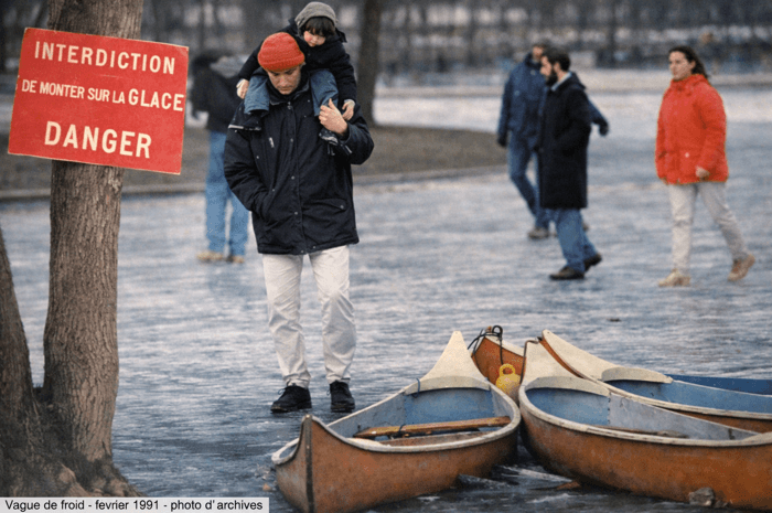 À Paris, le lac du Bois de Boulogne est totalement gelé et se traverse à la marche en février 1991 - Chronique Météo Villes