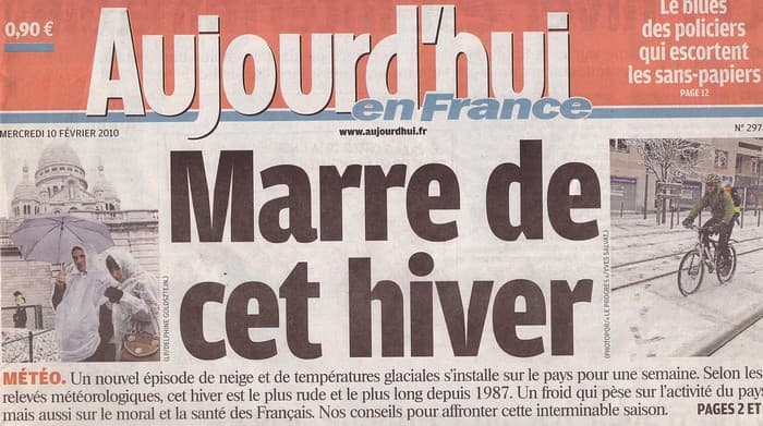 Les chutes de neige successives et le froid deviennent pesants pour bon nombre de français - Une du 10 février 2010