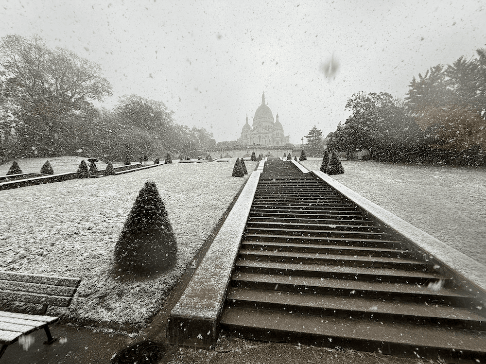 Saupoudrage de neige à Montmartre (avant des chutes de neige plus conséquentes en fin de journée) – Photo : Mathieu Milot