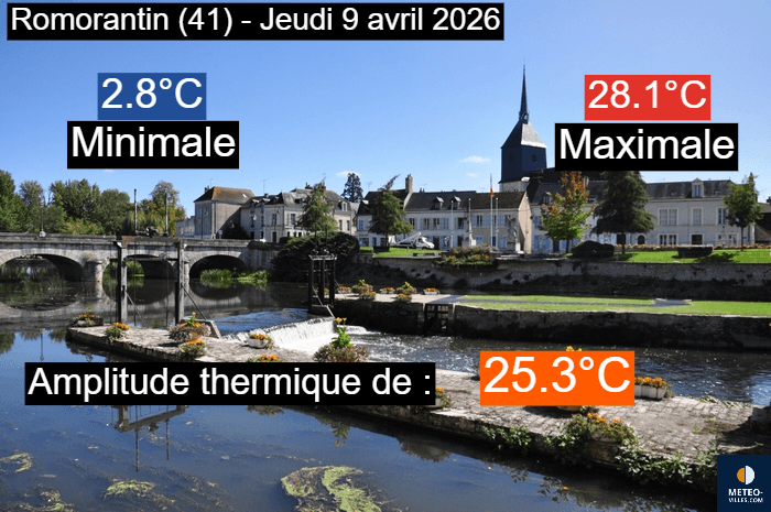Plus de 25°C d'amplitude thermique ce 9 avril à Romorantin (41) – Météo-Villes