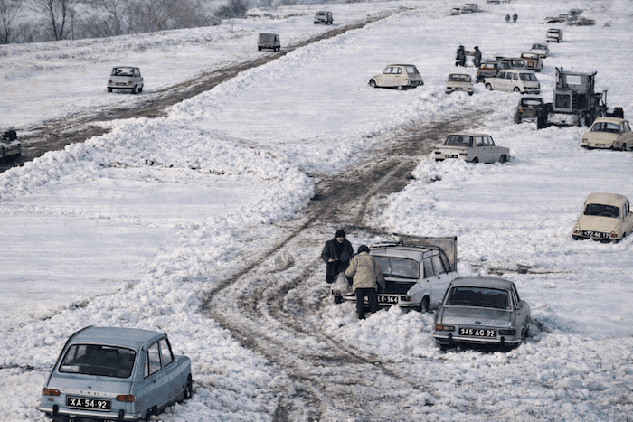 Le 29 décembre 1970, la pire tempête de neige depuis 1917 paralyse le nord des régions Méditerranéennes. Alors que la neige recouvre déjà toute la moyenne vallée du Rhône, l’autoroute du soleil reste ouverte, piégeant 6000 voitures sur 53 km. On frôle la catastrophe et on réalise vite que cette portion d’autoroute, ouverte depuis seulement 4 ans, manque cruellement d’un plan de secours pour une telle situation.