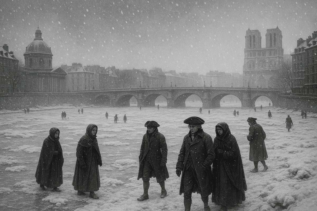 À la fin du mois de novembre 1788, alors que la durée des journées diminue et que les marchés expriment déjà des inquiétudes quant à des récoltes insuffisantes (en raison notamment d’un été exceptionnellement défavorable et de l’orage destructeur du 13 juillet 1788), un vent provenant de l’est traverse subitement la France. Ce vent transporte de l’air glacial, comparable à un souffle de pierre. En l’espace de quelques nuits, les eaux se solidifient sur les canaux, et le sol, durci, résonne sous le passage des chevaux.