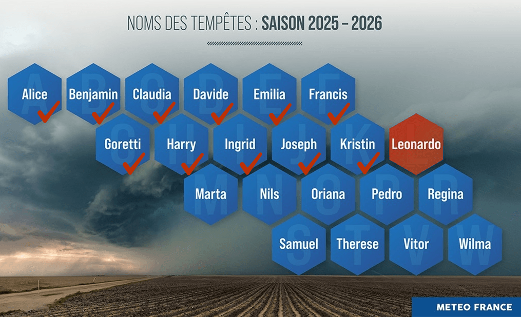 Noms des tempêtes pour la saison 2025-2026 - Météo France