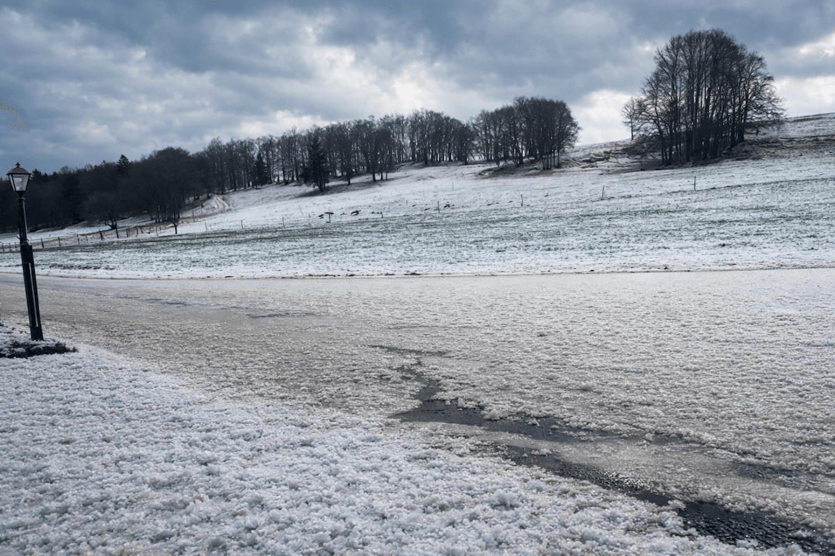 Toutefois, les orages les plus virulents ont circulé de l'autre côté de la frontière. C'est dans le nord-ouest de la Suisse qu'ont circulé les cellules les plus actives, se déclenchant au dessus du massif jurassien avant de se décaler vers le sud de l'Allemagne. Localement, de fortes chutes de grêle ont pu être observées. La photo ci-dessous montre des paysages totalement blanchis par les grêlons sur la montagne du Montoz dans le Jura suisse cet après-midi du samedi 11 avril 2026.