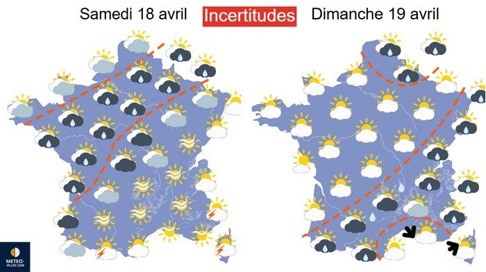 Temps sensible prévu sur la France entre le 18 et le 19 avril 2026 - Météo-Villes