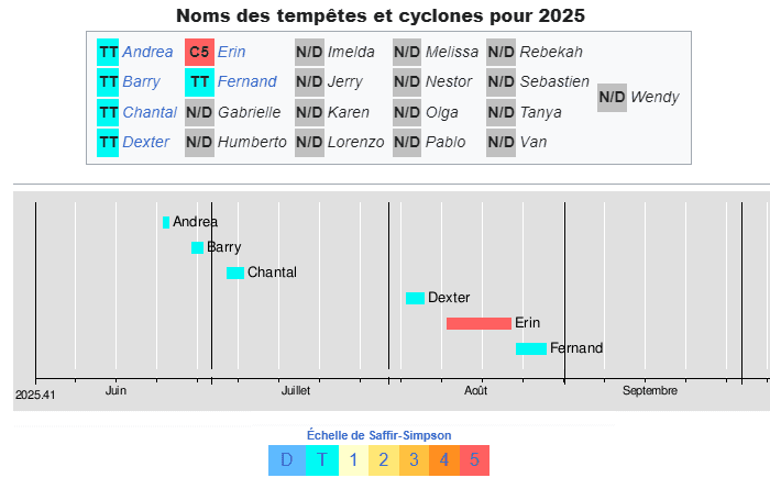 Tempêtes tropicales et ouragan observés durant cette saison 2025 sur l'Atlantique - Wikipedia