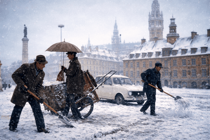 La Grand place de Lille sous 10 cm de neige au début du mois d'avril 1975 - Photo meteo-paris.com