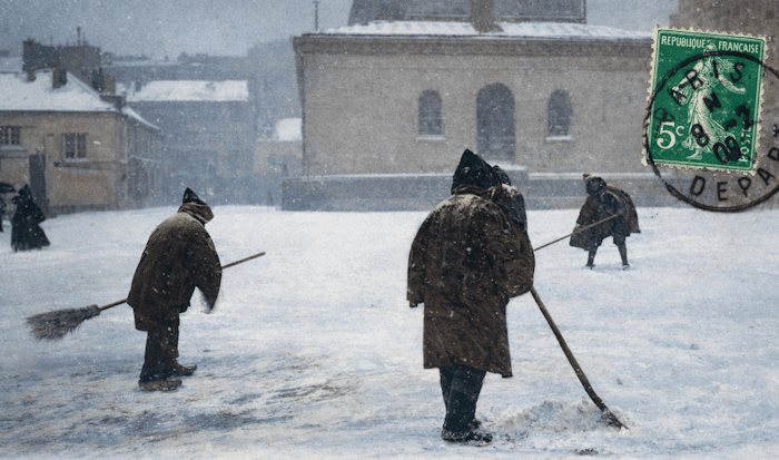 Dès la fin du mois de février 1909 et durant la première partie du mois de mars 1909, une vague de froid tardive sévit sur tout la France. Le 4 mars 1909, il fait -11°C à Clermont-Ferrand, -10°C à Besançon et -7°C à Dunkerque ! Ce froid s'accompagne aussi d'une offensive de la neige. Elle tombe en plaine dans de nombreuses régions. Le 3 mars 1909, une véritable tempête de neige s'abat sur la région parisienne et la capitale se retrouve sous 15 à 20 cm ! Très peu développée en 1909, la météo n'a rien vu venir et les journaux de l'époque parlent des météorologues comme "des charlatans qui ne s’étonnent jamais de rien et qui ne prévoient pas les phénomènes"...