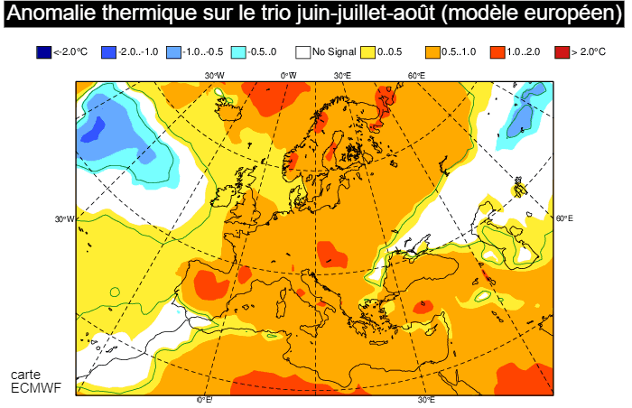 Anomalie thermique sur l'été 2026 selon le modèle européen - ECMWF