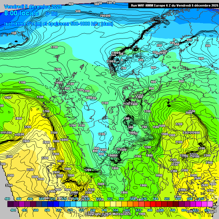 Évolution de l'isotherme 0° en Europe jusqu'au mercredi 10 décembre - modèle meteo WRF