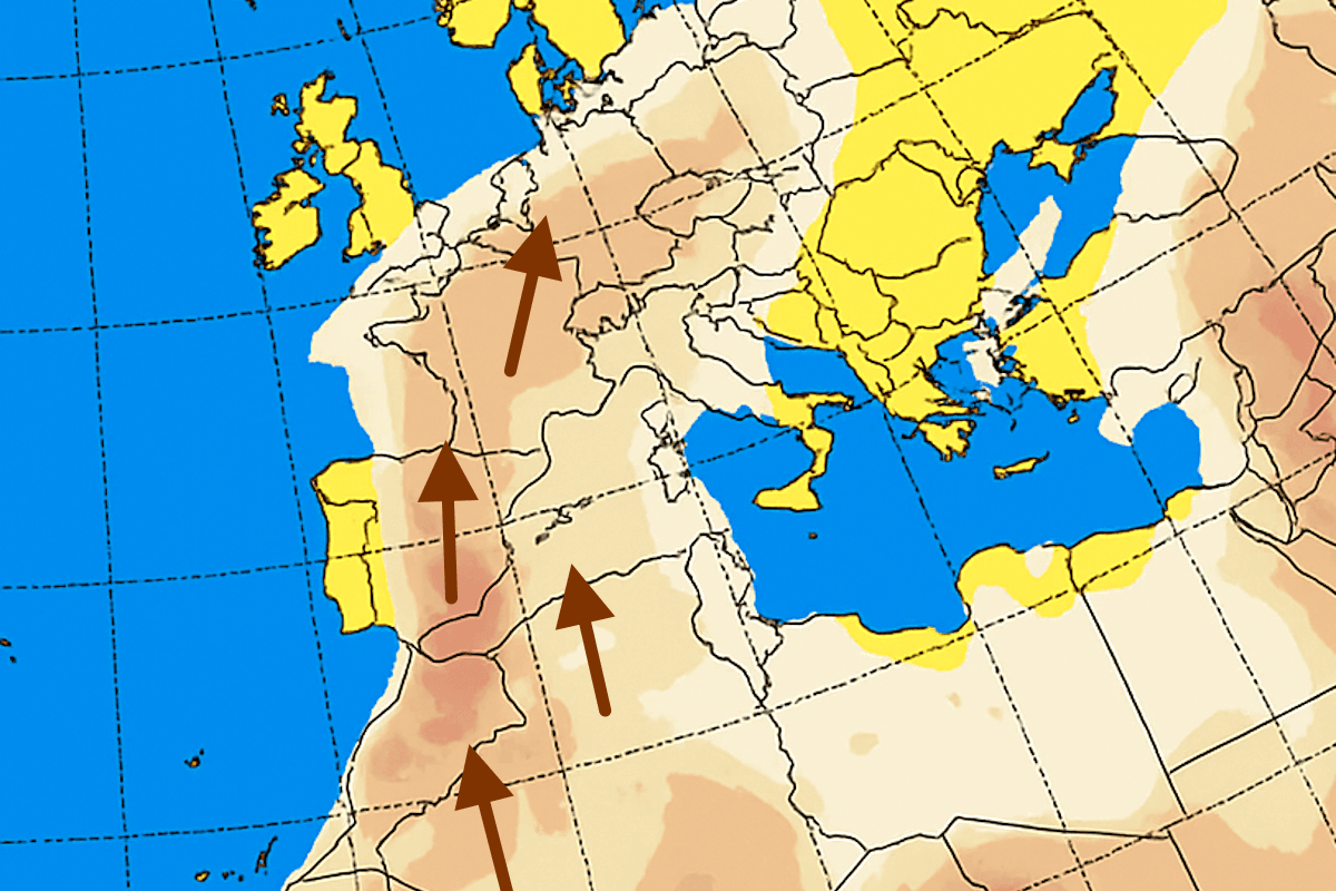 C'est un véritable cas d'école que l'on observe. L'anticyclone est actuellement sur la Méditerranée et l'Europe Centrale tandis qu'une dépression très active est centrée au large sur l'Atlantique. Cette dernière pilote un flux de sud très dynamique sur la France. Il prend ses racines en Afrique, au dessus du Sahara. De ce fait, les températures vont atteindre des sommets mais on s'attend aussi au soulèvement de fines poussières de sable, remontant en direction de notre pays, portées par de forts courants d'altitude.