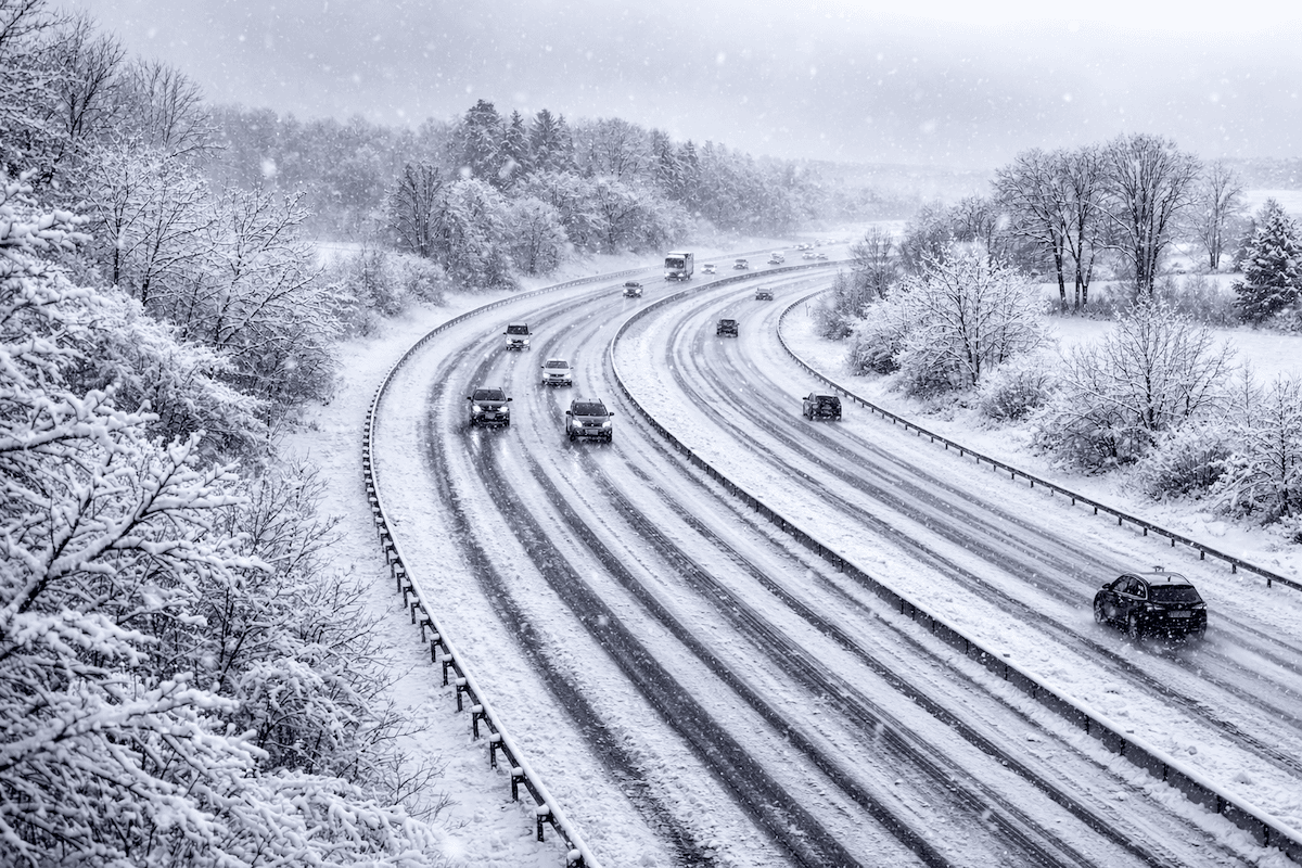 Une coulée d'air froid affecte l'Est de la France ce samedi 14 mars avec de la neige des 500 m d'altitude comme ici sur l'A48.
