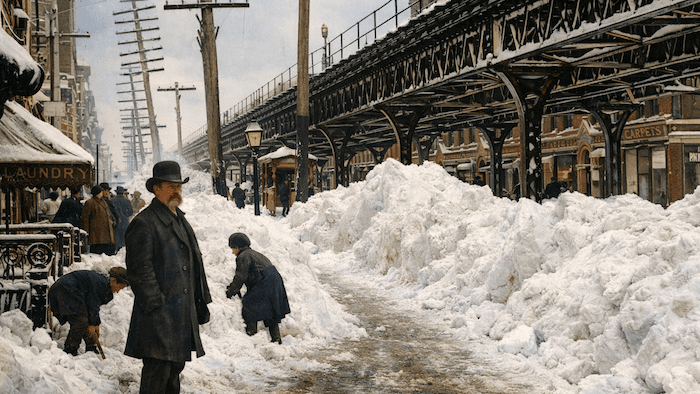 En terme de conséquences directes, il s'agit de la tempête de neige la plus dévastatrice de l'histoire de New York ! Et pourtant, elle ne se classe qu'au 4ème rang en terme de quantité de neige tombée avec un cumul de 53 cm sur la ville. Malgré tout, elle est marquée par des vents très violents, ayant formé des congères atteignant parfois 1 à 2 mètres au cœur de la ville ! À l'époque, il n'y a pas de prévision météo et personne ne se prépare à cet épisode. La ville s'en trouve paralysée et les lignes électriques sont endommagées. Cette tempête causera plus de 400 décès, dont environ 200 à New York City.