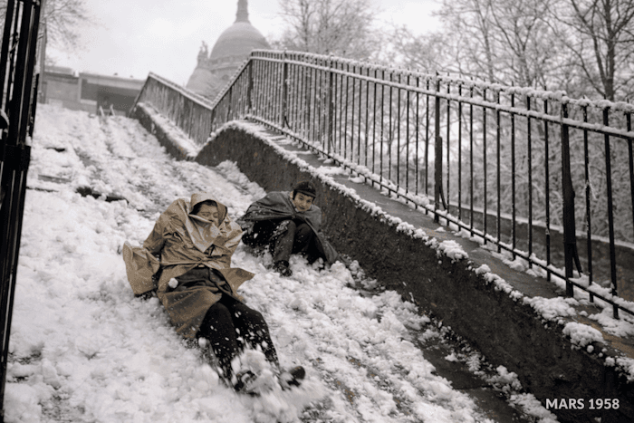 Les joies de la neige du 12 mars 1958 sur la Butte Montmartre à Paris - Chronique Météo Villes