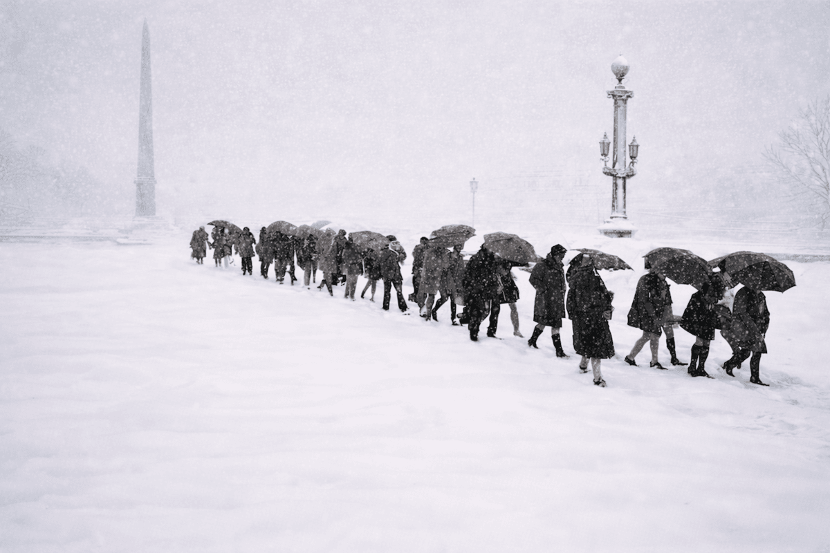 La tempête de neige du 4 mars 1970 sur la plate de la Concorde (Paris) à la sortie des bureaux - photo archives meteo-paris.com