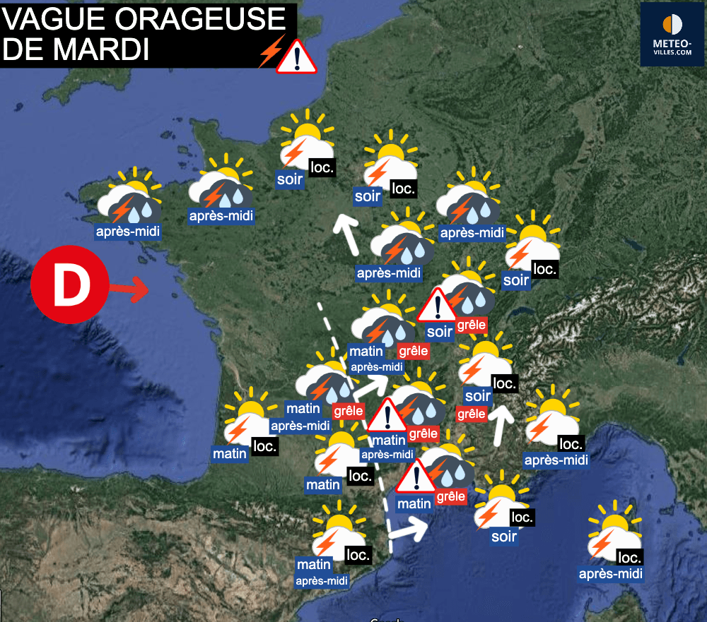 Carte de prévisions des orages pour mardi - METEO-VILLES