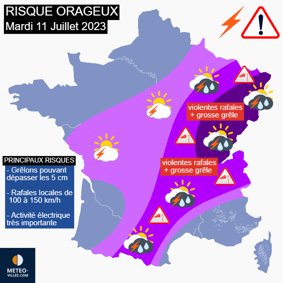 Carte du risque orageux pour ce mardi 11 juillet 2023 - Météo Villes