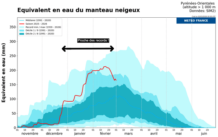 Équivalent en eau du manteau neigeux dans les Pyrénées-Orientales pour l'hiver 2025/2026 – Météo-France