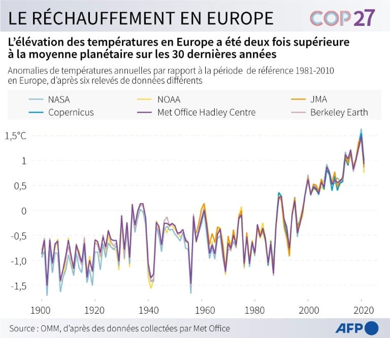 Évolution des températures moyennes en Europe depuis 1900 – AFP et OMM