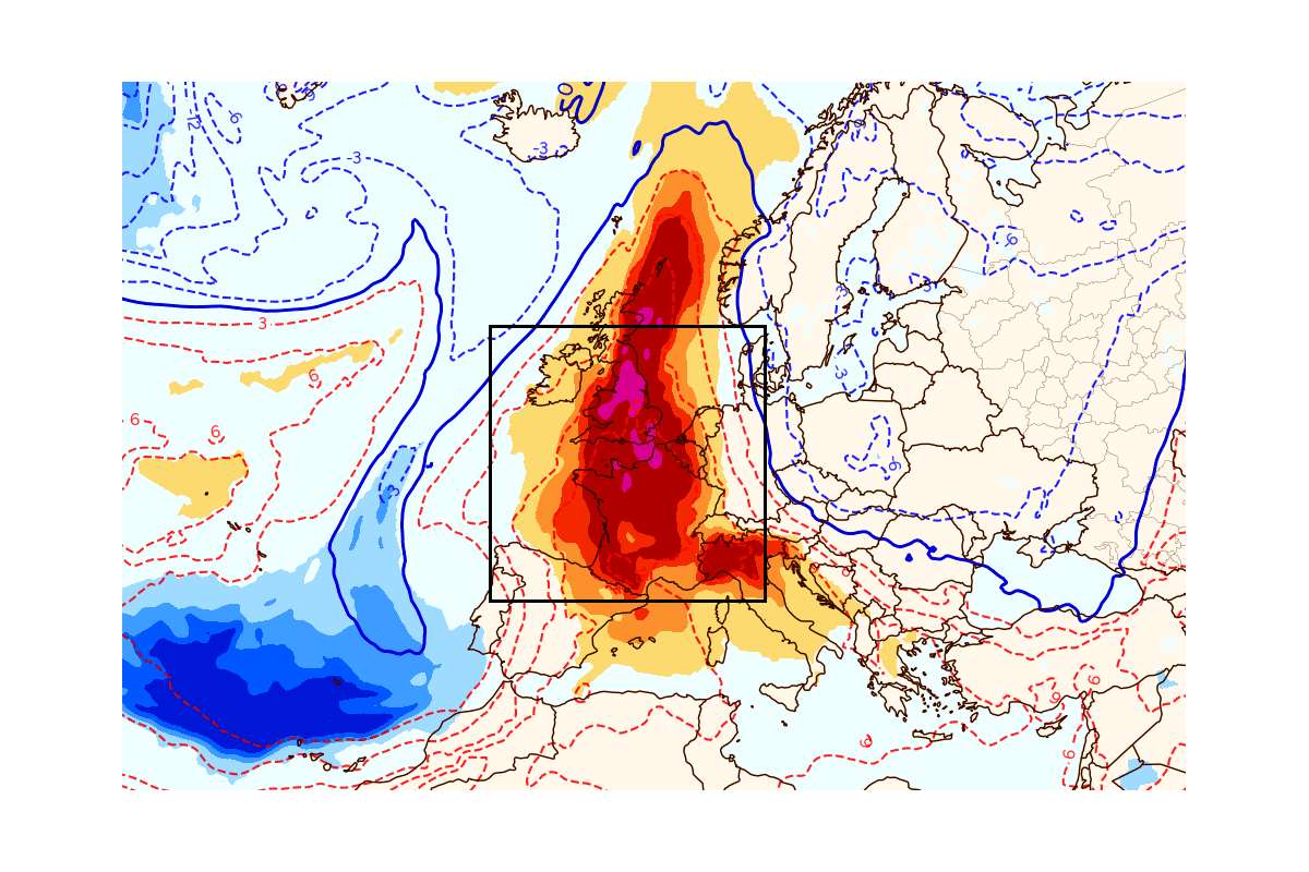 Les températures à 850 hPa s'annoncent exceptionnellement élevées pour la période cette semaine sur l'ouest de l'Europe et la France - Polar WX