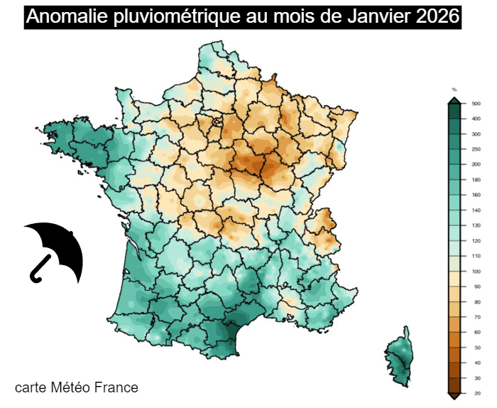 Anomalie pluviométrique au cours du mois de janvier 2026 - Météo France