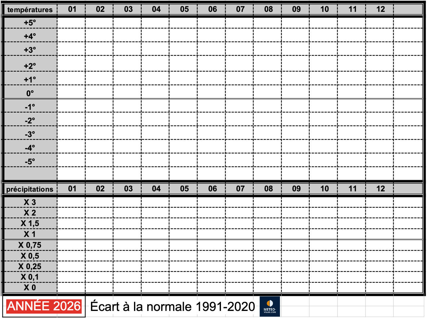 Climat, météo et écarts à la normale des températures et des pluies mensuelles au cours de l'année 2026
